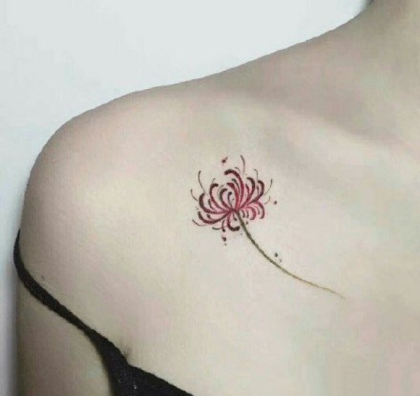 锁骨处美丽而骄傲的彼岸花纹身图案