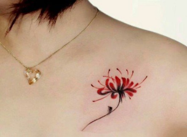 锁骨处美丽而骄傲的彼岸花纹身图案