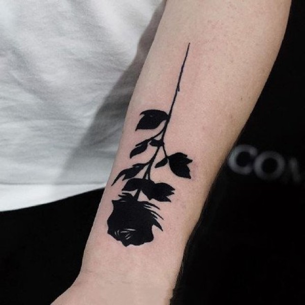 黑色适合遮盖的一组小花朵玫瑰纹身图案作品9张