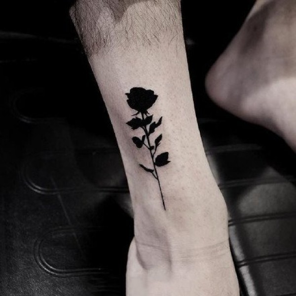 黑色适合遮盖的一组小花朵玫瑰纹身图案作品9张