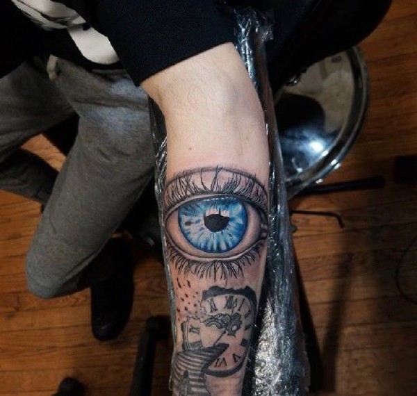 拥有蓝色眼球的一组逼真写实3d眼睛纹身作品图案