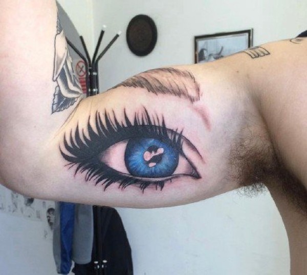 拥有蓝色眼球的一组逼真写实3d眼睛纹身作品图案