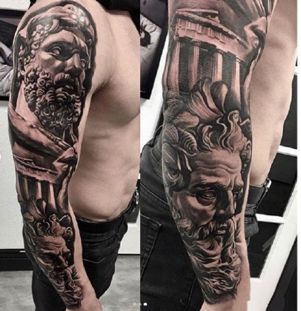 欧美花臂纹身_22张霸气黑灰欧美大黑花臂纹身图案作品图片