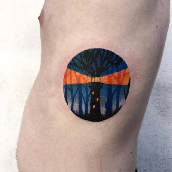 彩色风景纹身--一组几何图形+彩色的小风景纹身图案欣赏