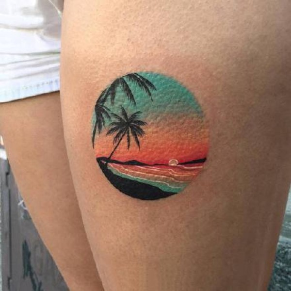 彩色风景纹身--一组几何图形+彩色的小风景纹身图案欣赏