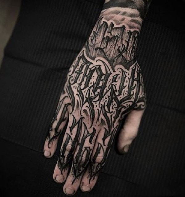 几张深黑色的奇卡诺花体字创意设计纹身图案