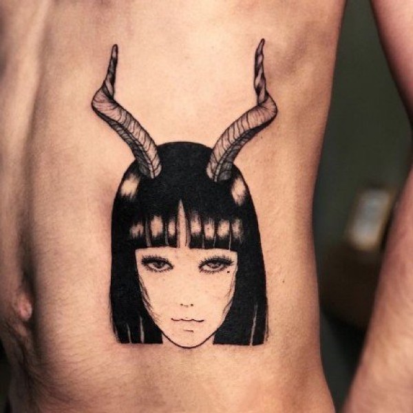 黑色调的一组小女郎纹身图片作品