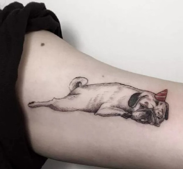 潮流纹身-色彩可爱的小猫小狗手臂纹身图片