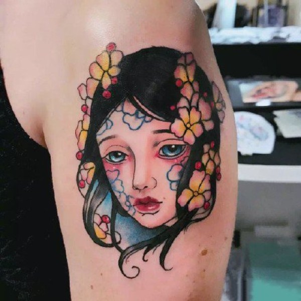 关于女孩子的一组小彩色女生纹身图案