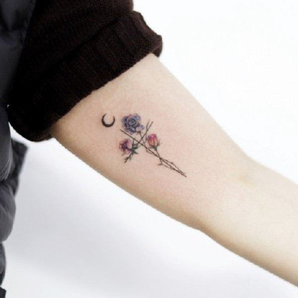 娇艳玫瑰手臂纹身_玫瑰花纹身图案大全_纹身图吧