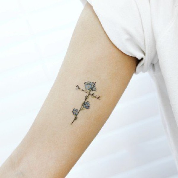 很小清新的十字架+玫瑰花的纹身图案欣赏