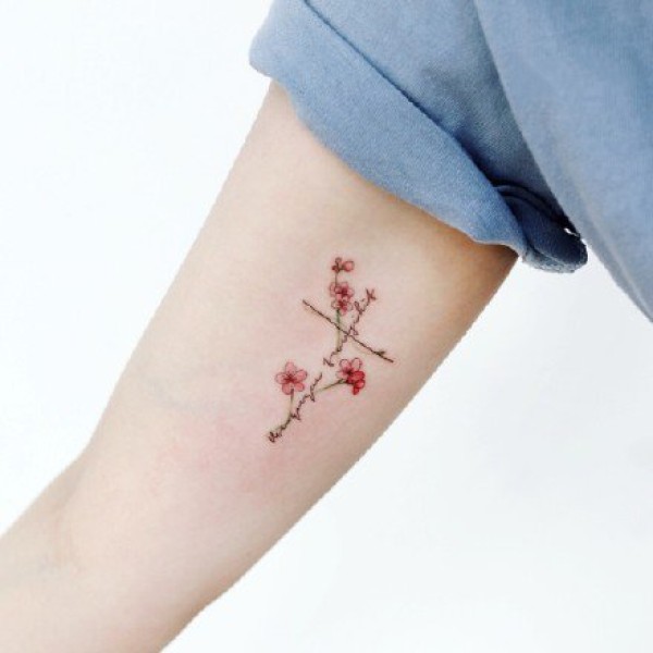 很小清新的十字架+玫瑰花的纹身图案欣赏