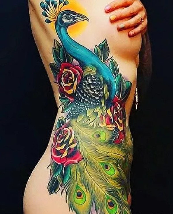 分享一张彩色孔雀文身作品图片