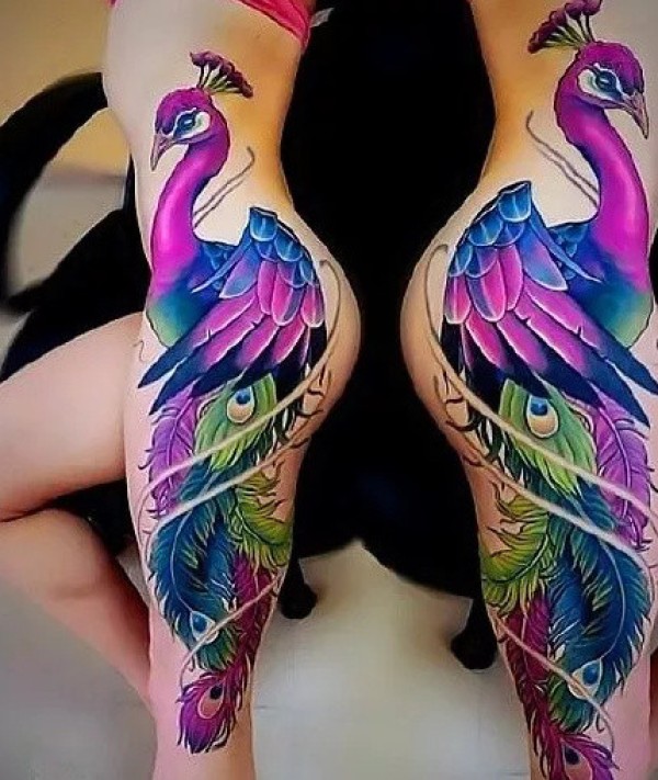 孔雀纹身图片 色彩斑斓的孔雀纹身图案