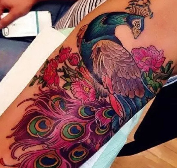 孔雀纹身图片 色彩绚丽的孔雀纹身图案