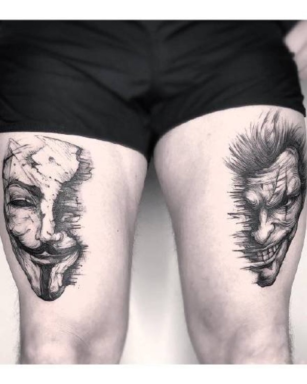 花腿纹身--一组大黑腿纹身图案作品欣赏