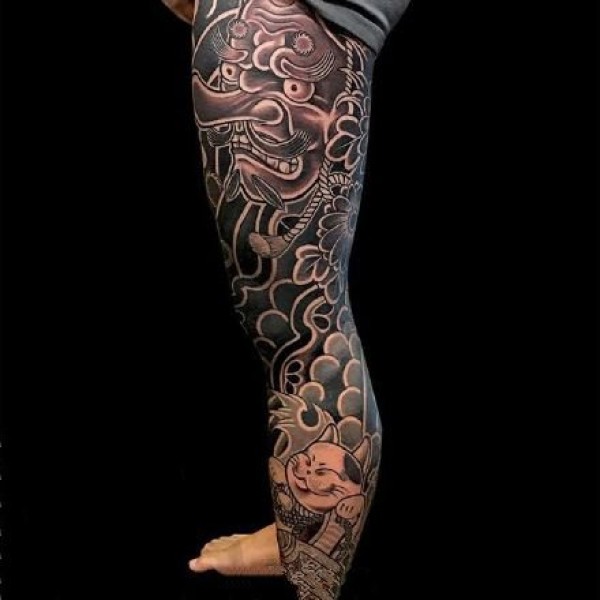 传统花腿纹身--18张传统风格的大花腿纹身图案作品