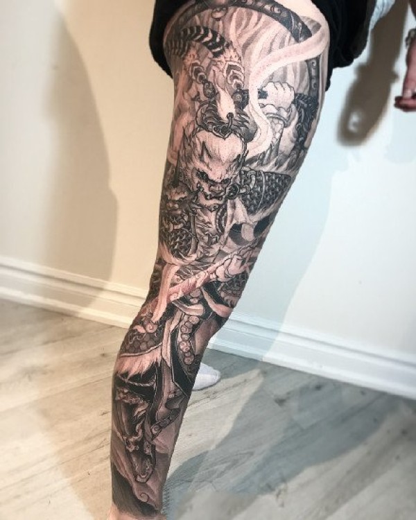 传统风格的霸气大花腿纹身作品欣赏