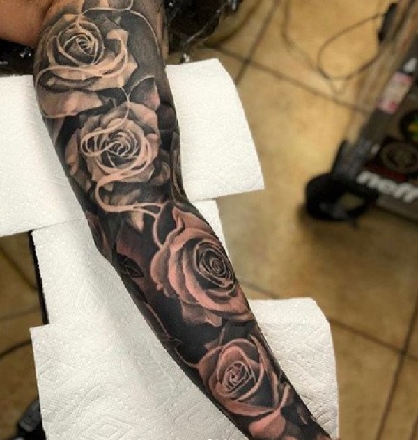 欧美花臂纹身_22张霸气黑灰欧美大黑花臂纹身图案作品图片