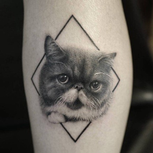 一组黑灰色的几何图形+小猫纹身图案欣赏