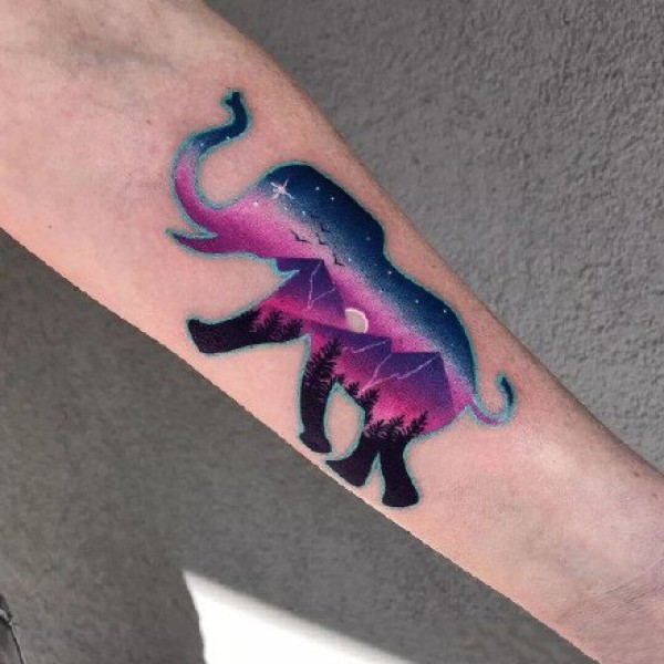 一组炫彩色星空星球宇宙相关的纹身图案作品