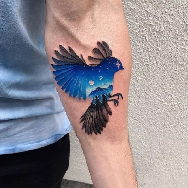 一组炫彩色星空星球宇宙相关的纹身图案作品