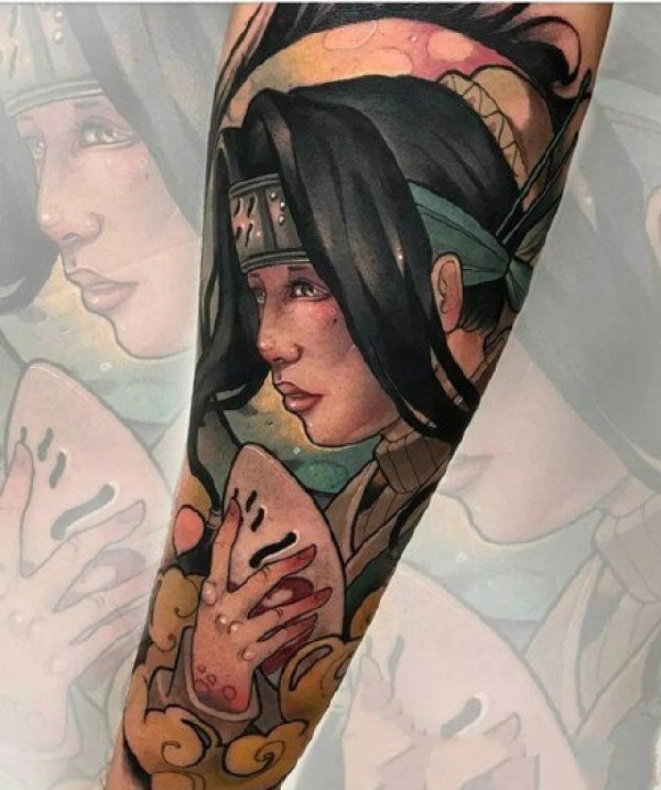 手臂上的火影忍者鸣人佐助卡卡西等角色动漫纹身图案