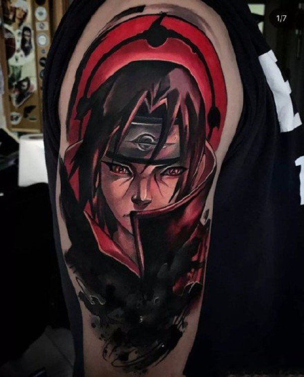 手臂上的火影忍者鸣人佐助卡卡西等角色动漫纹身图案