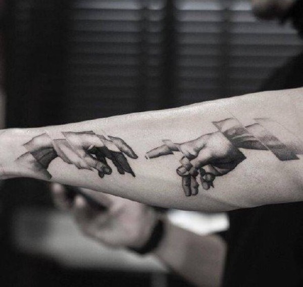 触碰手指的手势纹身作品图案欣赏