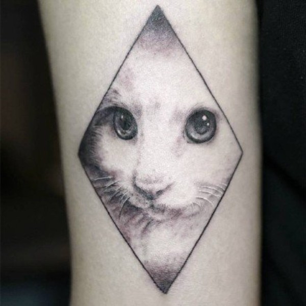 一组黑灰色的几何图形+小猫纹身图案欣赏