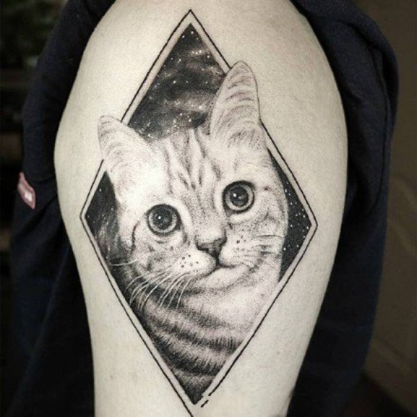一组黑灰色的几何图形+小猫纹身图案欣赏