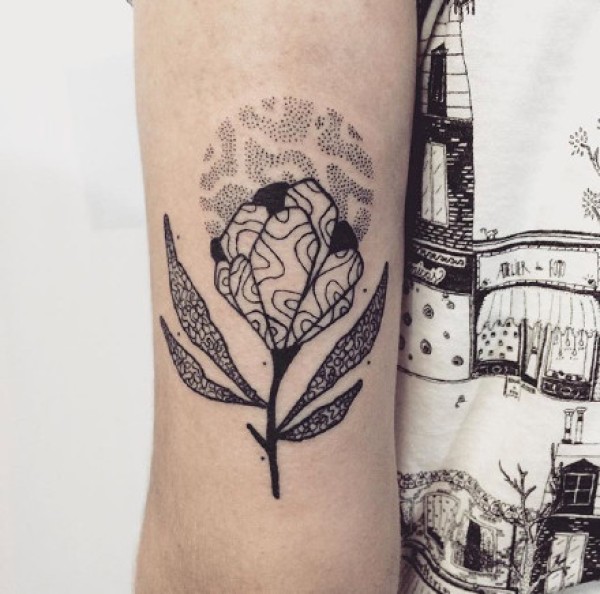 一组胳膊上的点刺黑色小图纹身作品欣赏