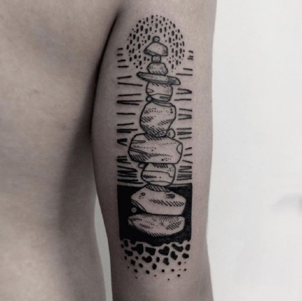 一组胳膊上的点刺黑色小图纹身作品欣赏