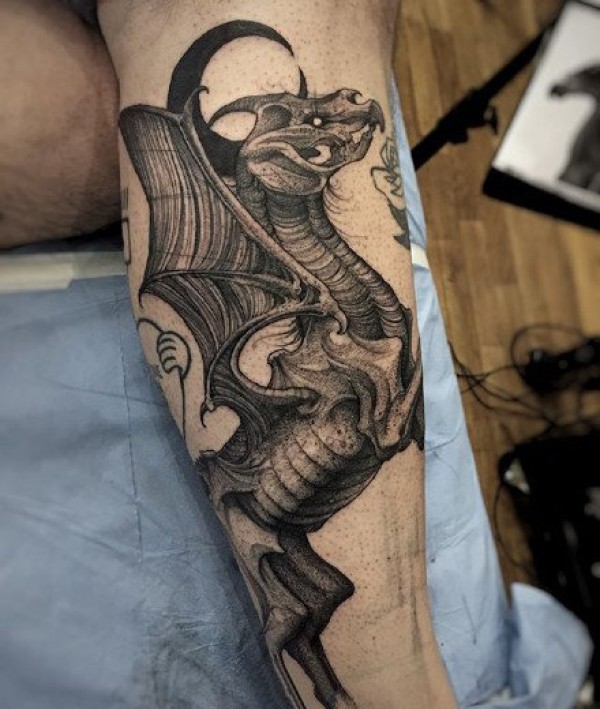 花腿纹身--一组大黑腿纹身图案作品欣赏