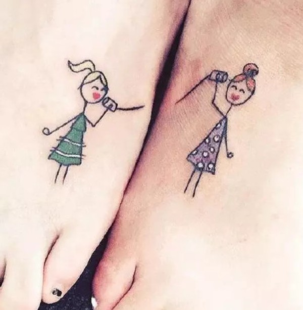 适合闺蜜和姐妹的一组成对纹身图案作品9张
