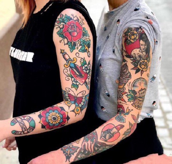 传统风格的一组男性花臂和花腿纹身图案欣赏