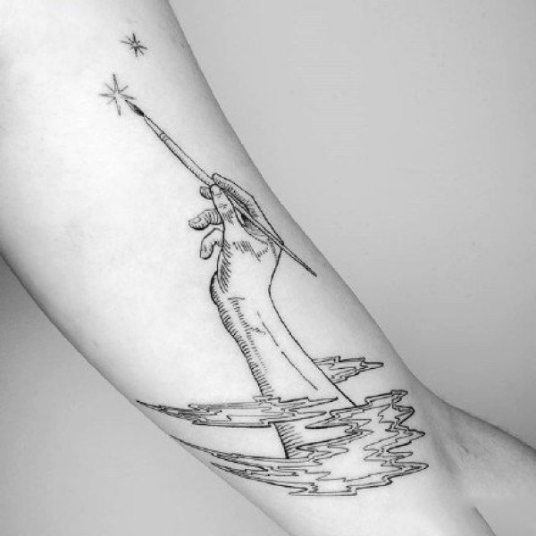 25款男性黑色手臂线条纹身点刺技巧半甲纹身图案