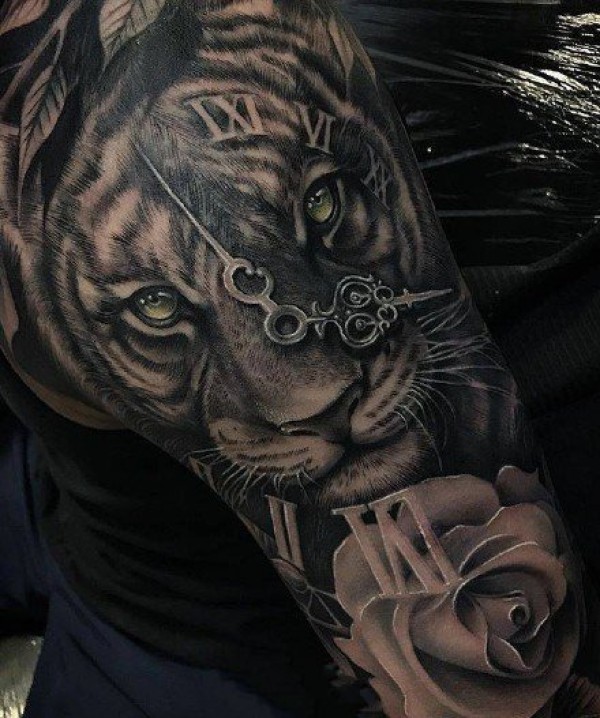 男性们都喜欢这样帅气的凶猛的老虎纹身图案