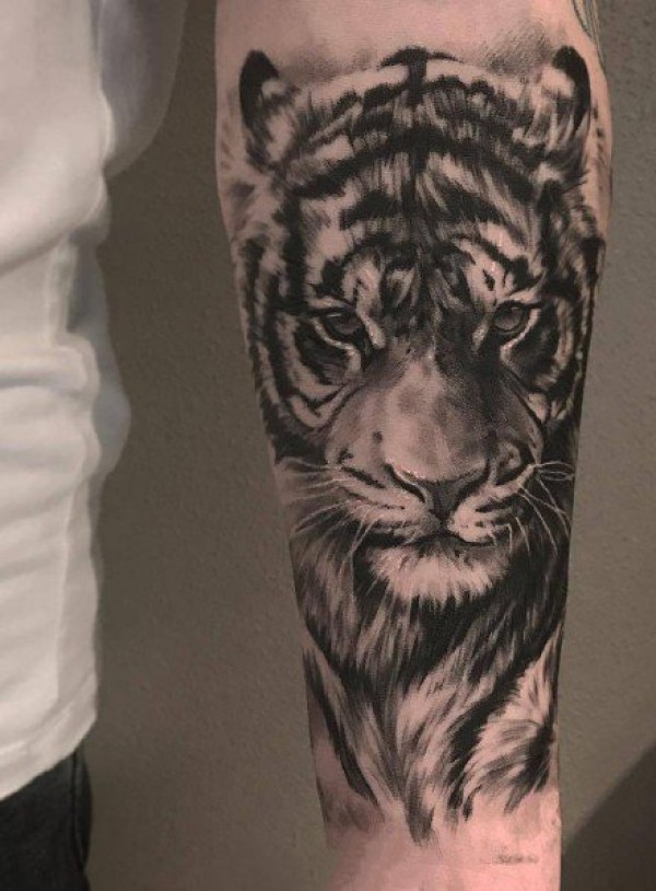 男性们都喜欢这样帅气的凶猛的老虎纹身图案