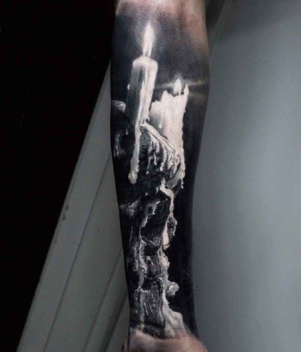 小臂点刺黑灰欧美风蜡烛纹身tattoo图案