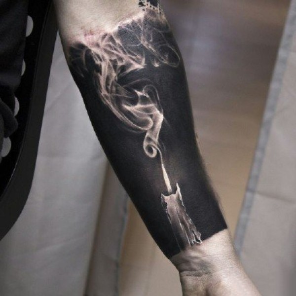 小臂点刺黑灰欧美风蜡烛纹身tattoo图案