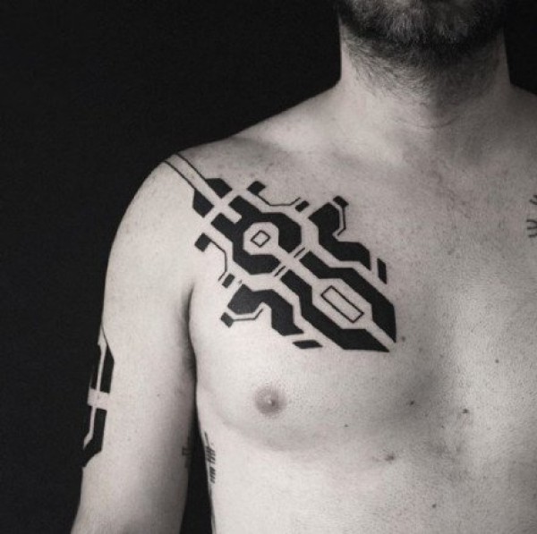 肩部科幻图腾纹身图案