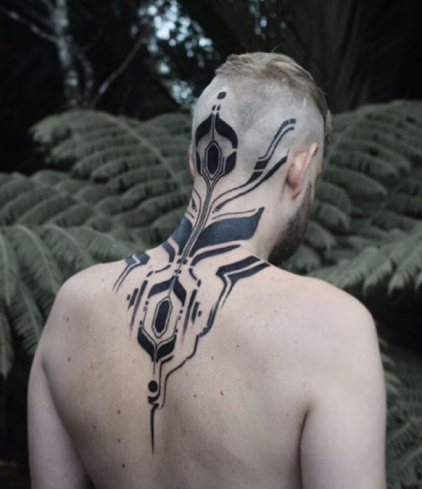 很有科幻主义未来感觉的一组黑色图腾纹身作品