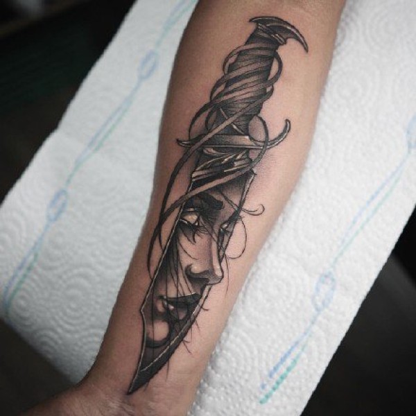 心脏纹身图案 女生手臂上黑灰纹身心脏纹身图案