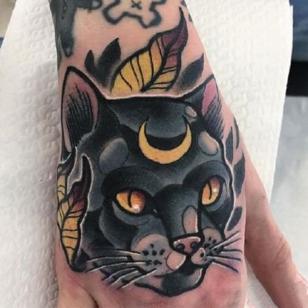 手背猫纹身:9张大花手背的猫纹身图案赏析