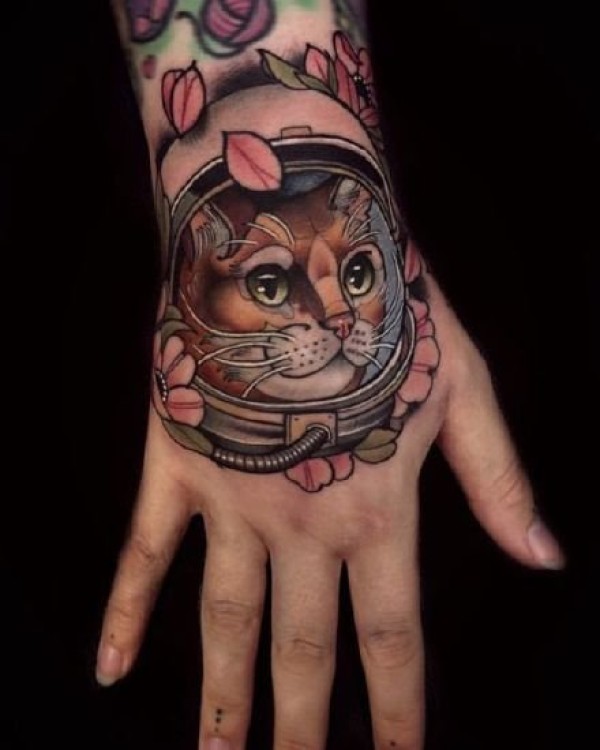 手背猫纹身:9张大花手背的猫纹身图案赏析