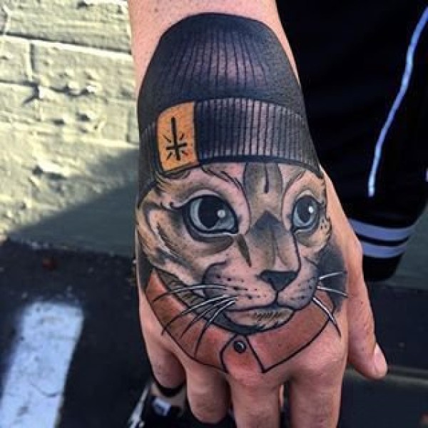 手背猫纹身:9张大花手背的猫纹身图案赏析