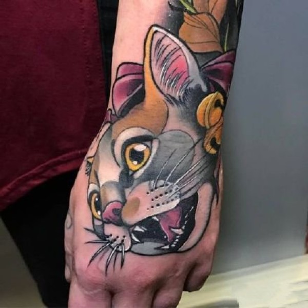 手背猫纹身:9张大花手背的猫纹身图案赏析