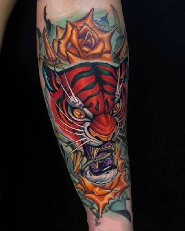 newschool老虎:一组school风格的彩色老虎纹身图案