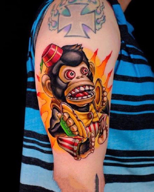欧美newschool风格的手臂彩色纹身图